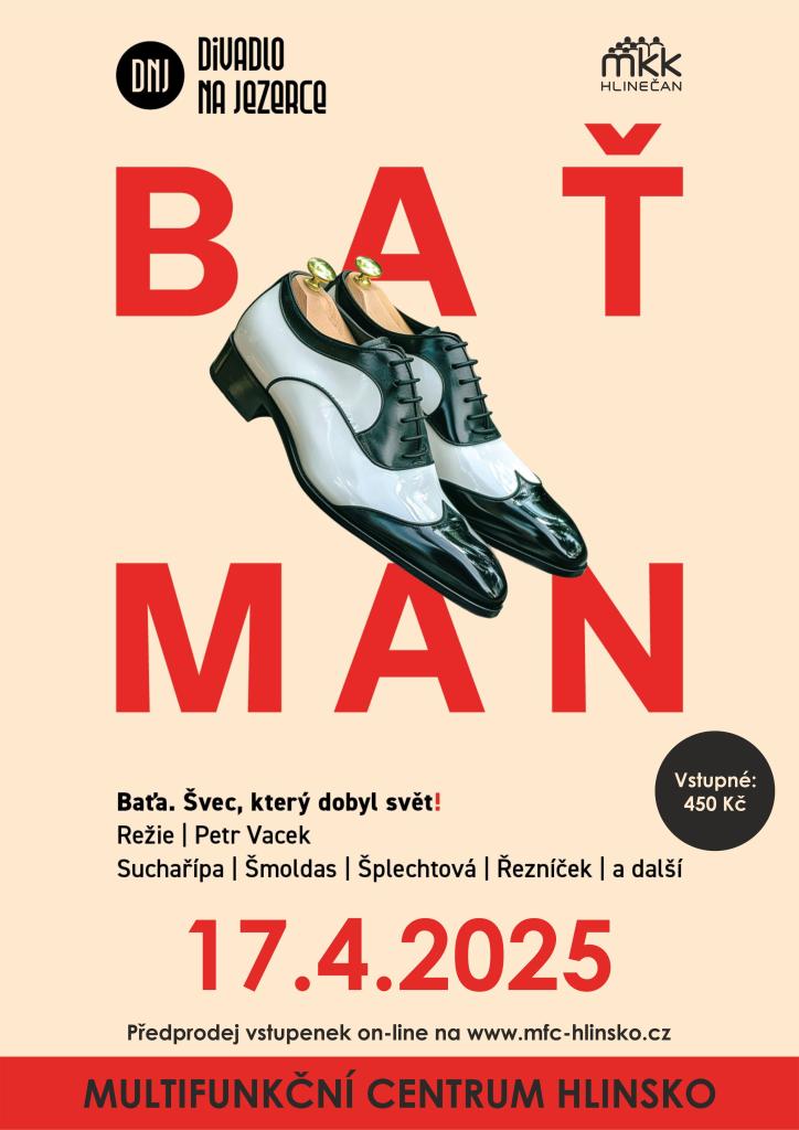 Baťa. Švec, který dobyl svět! Režie se ujal Petr Vacek a představí se známí herci jako D. Suchařípa, I. Šmoldas, M. Šplechtová a další. Vstupné činí 450 Kč, předprodej je k dispozici online.