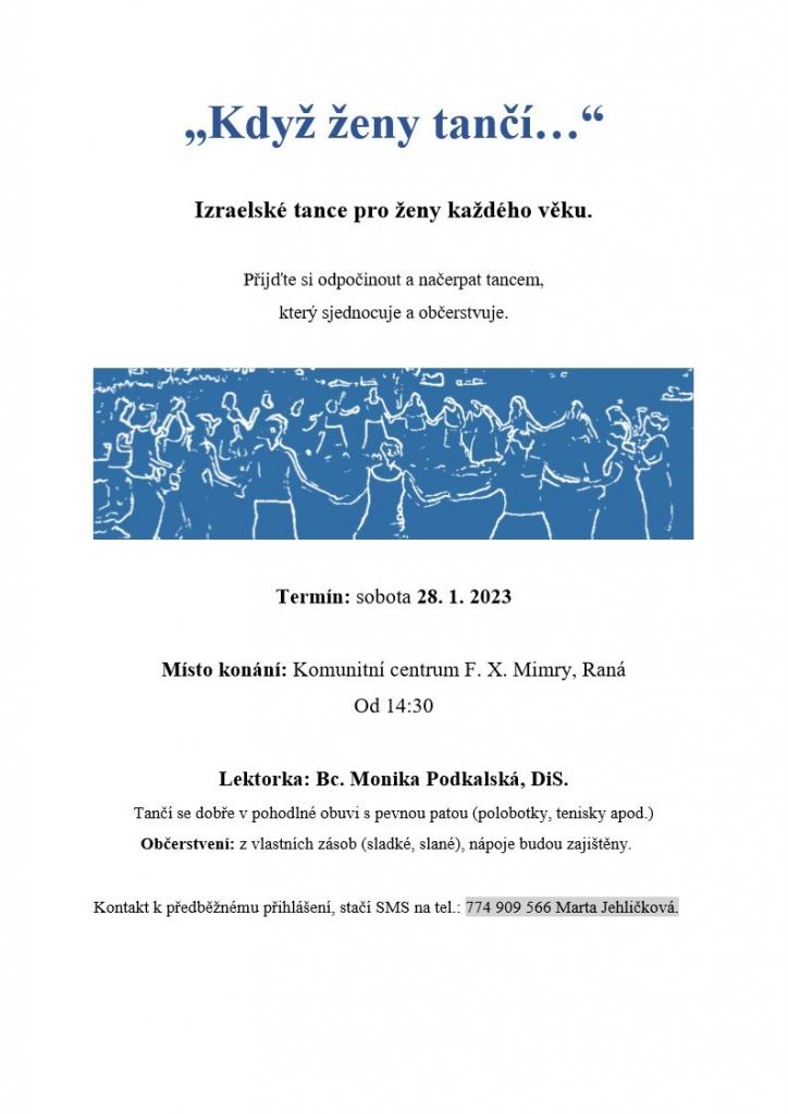 Izraelské tance pro ženy každého věku. Lektorka: Bc. Monika Podskalská, DiS.