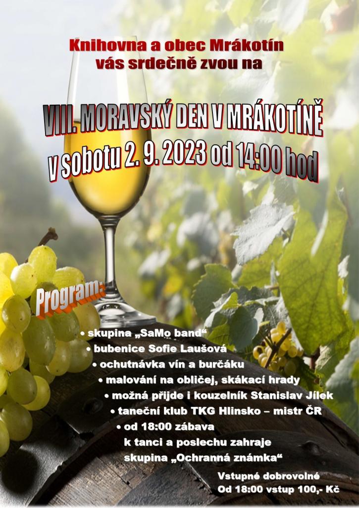 Ochutnávka vín a burčáku, atrakce pro děti, skupina SaMo band, bubenice Sofie Laušová, TKG Hlinsko, večer taneční zábava.