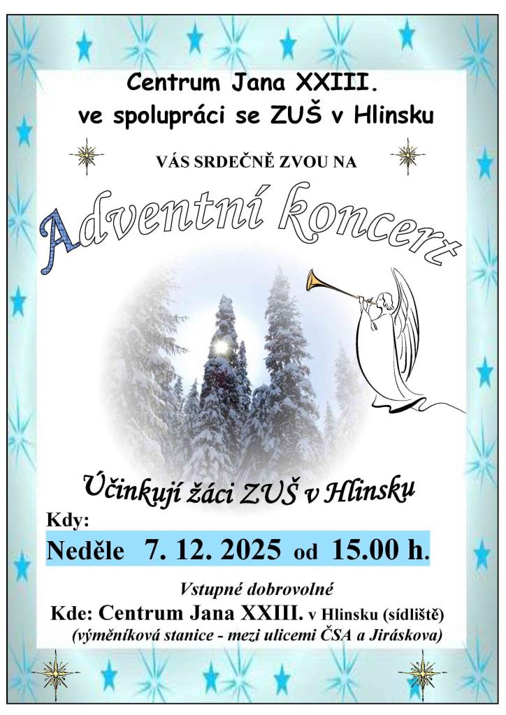 Účinkují žáci Základní umělecké školy v Hlinsku. Vstupné je dobrovolné.