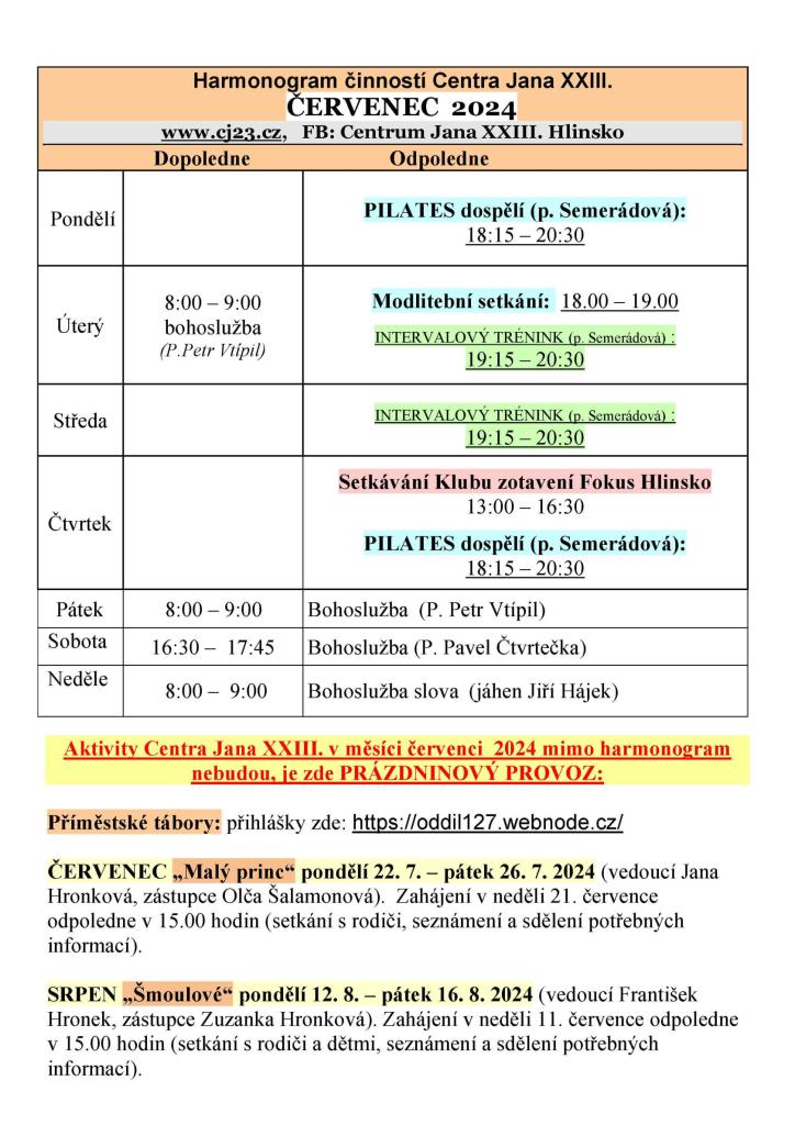 Harmonogram na červenec