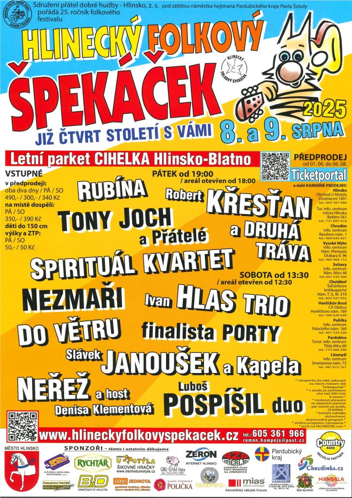 Přijďte oslavit čtvrt století Hlineckého folkového Špekáčku. Akce se koná v areálu Cihelka v Hlinsku-Blatno a nabídne bohatý program a občerstvení.