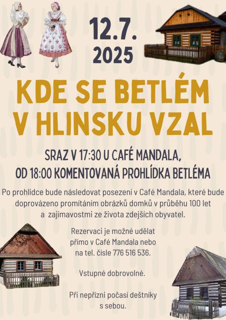 Komentovaná prohlídka Betléma s paní PhDr. Ilonou Vojancovou. Poté bude probíhat v Café Mandala promítání obrázků domků v průběhu 100 let a povídání zajímavostí ze života zdejších obyvatel.