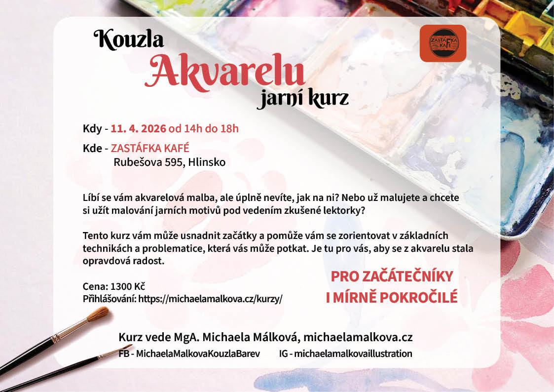 Tento kurz je určen pro začátečníky, ale i pro mírně pokročilé, kteří chtějí zdokonalit své dovednosti. Pod vedením zkušené lektorky MgA. Michaely Málkové se seznámíte se základními technikami akvarelové malby a naučíte se, jak malovat jarní motivy.