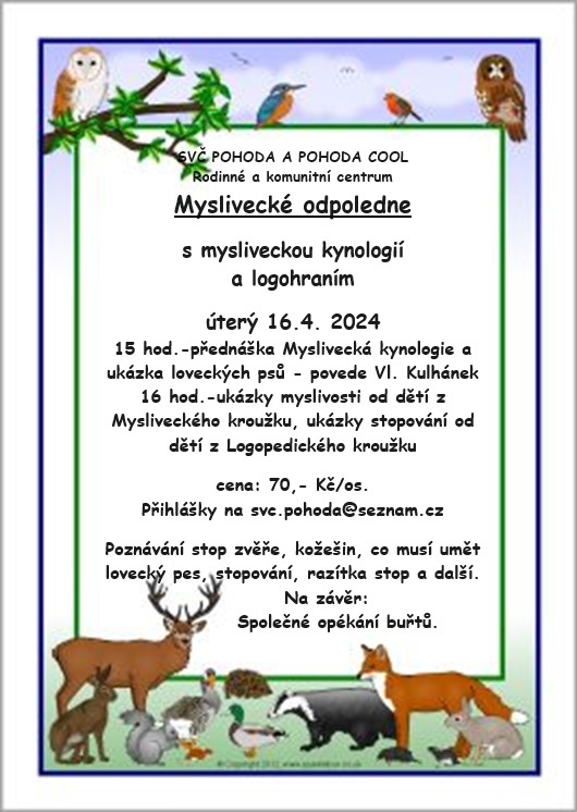 Ukázka loveckých psů, poznávání stop zvěře, ukázky stopování.
